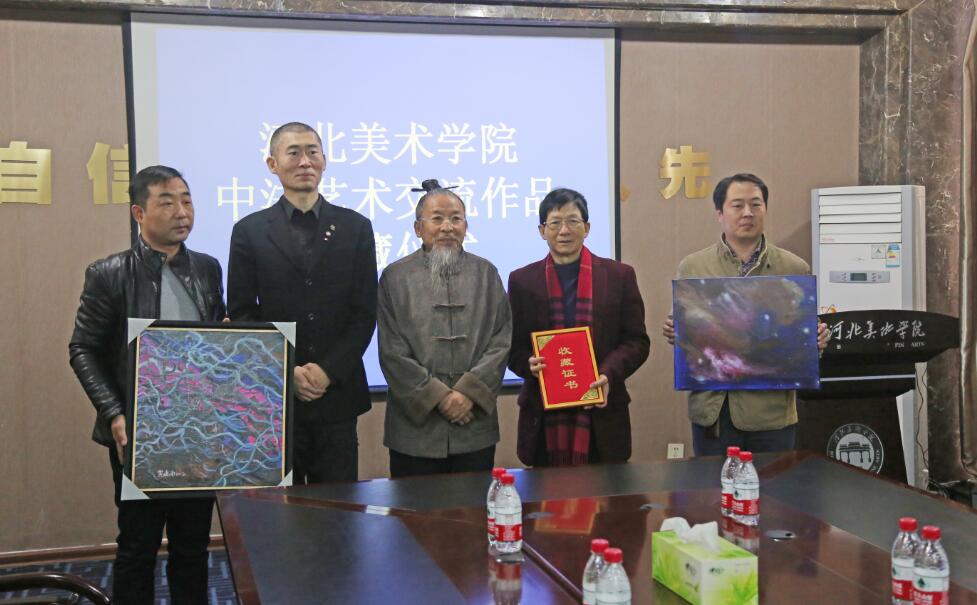 7日上午,黄建南和艺术家孙庆波先生分别为best365官网捐赠作品《脉》和《太空系列》,甄忠义校长为其颁发收藏证书。艺术文化交流活动期间,法方艺术家的作品在best365官网各展厅展出。