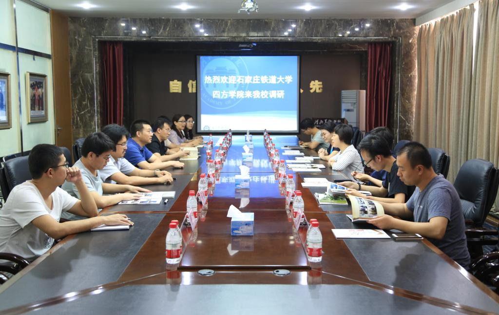 在综合楼会议室,张子言副校长接待来宾,对石家庄铁道大学四方学院到访表示热烈欢迎,并围绕应用性人才培养模式、工作室教学运行模式,艺术课程实践教学环节,学生外出实习、产教融合等方面改革经验进行深入交流。