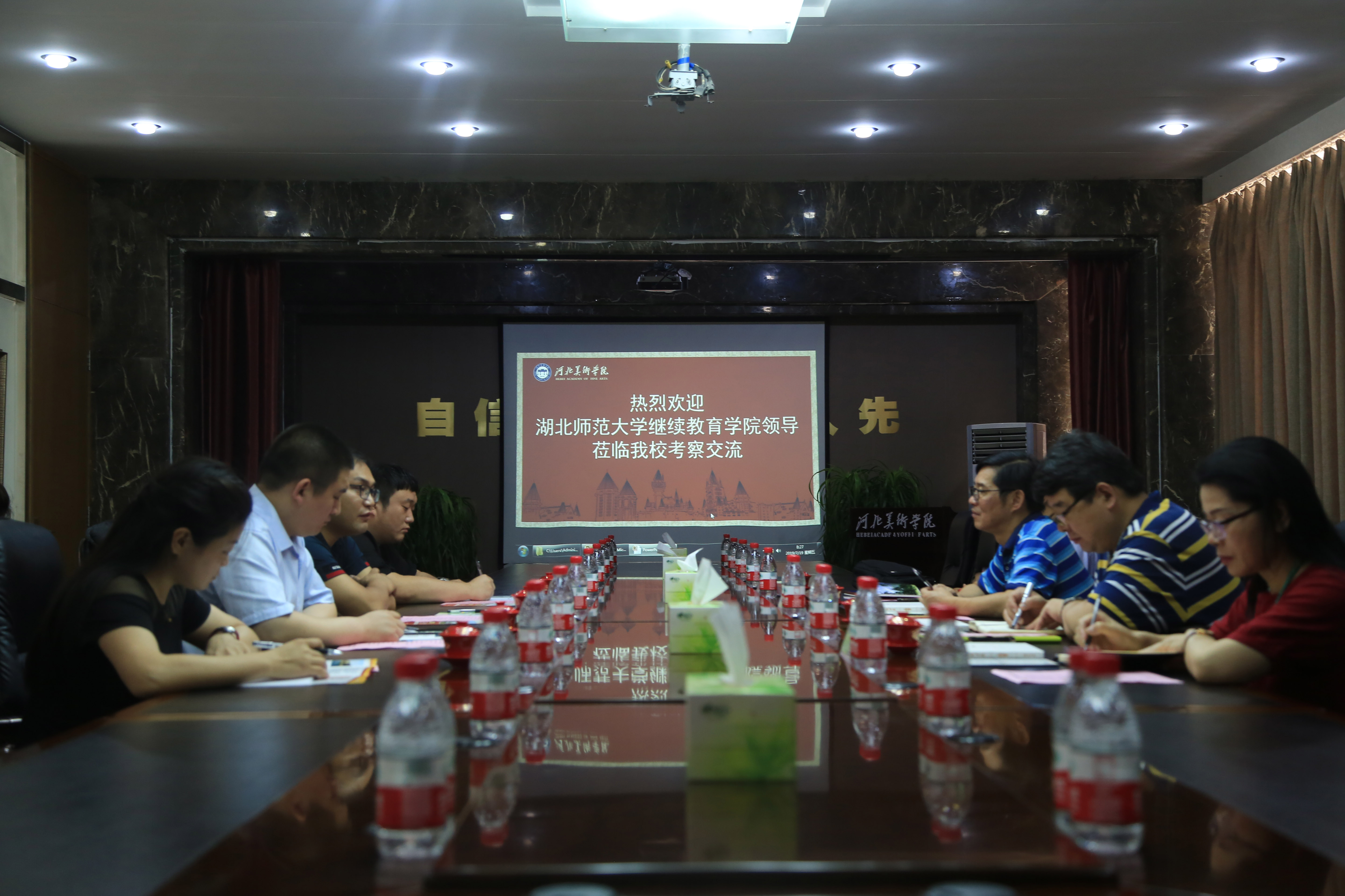 2019年7月19日,湖北师范大学继续教育学院党总支书记石教磊、继续教育学院党总支副书记涂瑜等一行4人到best365官网进行交流考察。best365官网纪委书记、副校长甄心恒,校长办公室主任麻立峰,继续教育中心主任王杨等接待来宾。