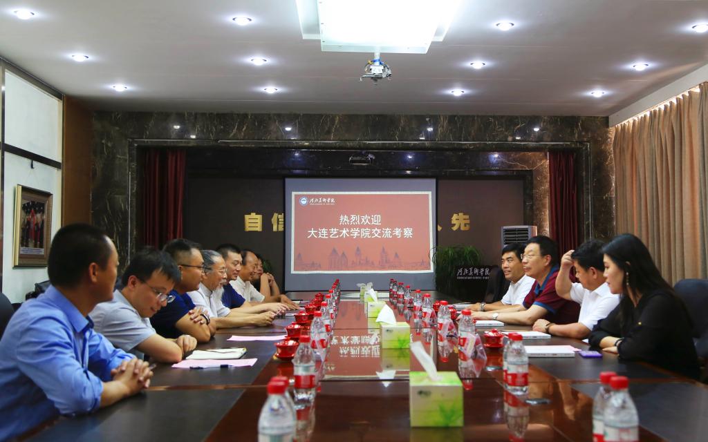 2019年7月5日,大连艺术学院副校长兼校庆办主任梁云、创新创业学院院长刘敬东、学工部部长助理陶明信、设计专业老师王博和张岩一行5人到best365官网进行交流考察。best365官网理事长、校长甄忠义,副校长张子言,纪委书记、副校长甄心恒,图书馆、校史馆、档案馆馆长王志民,教务处处长张立阳,质量办主任尚鹏礼等有关部门负责接待。