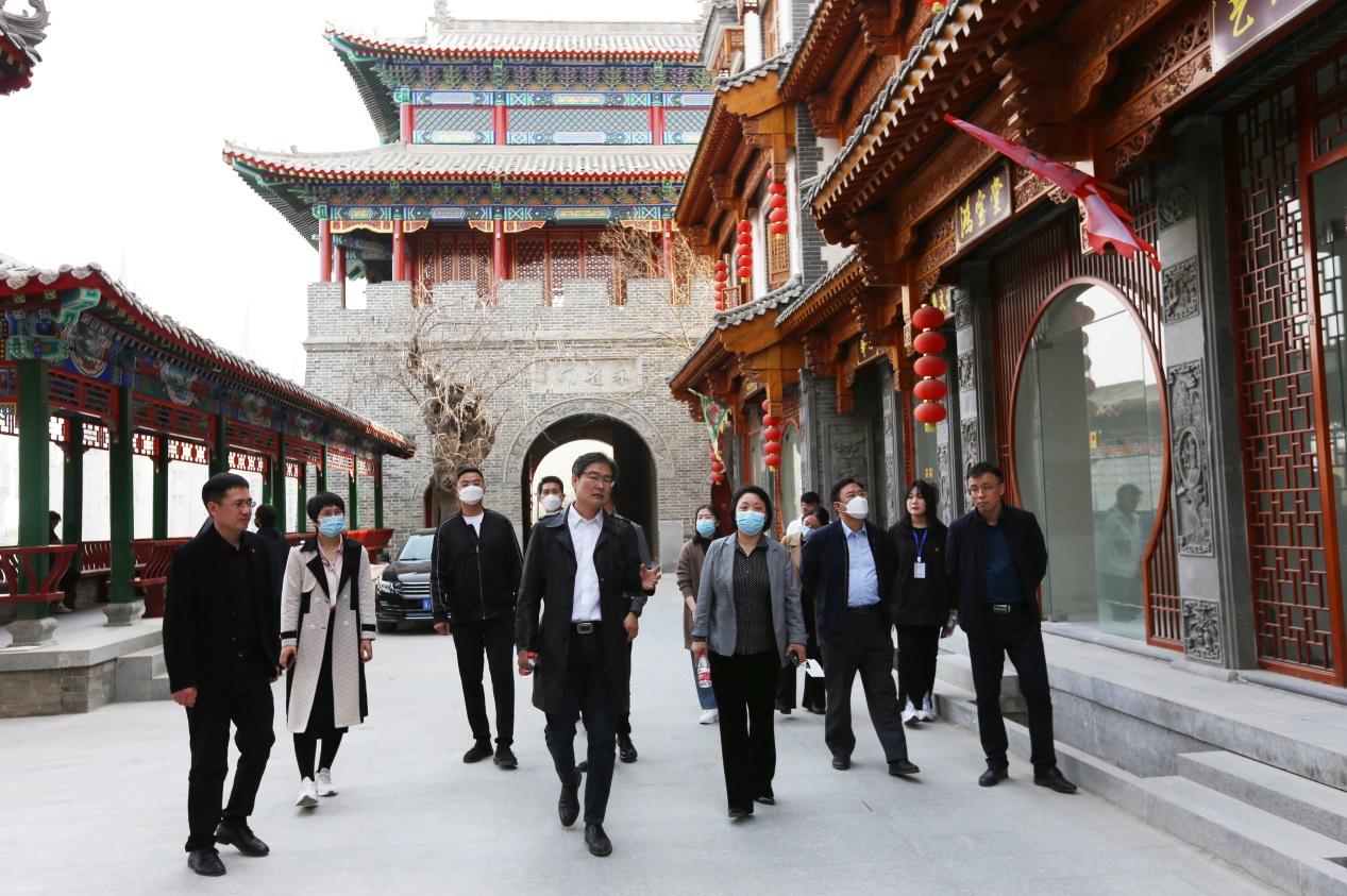 裴红彬陪同卢润彩一行参观了红色文化长廊、红色文化情景园、民俗墙、大学生创新创业城、文峰塔、展览馆等。