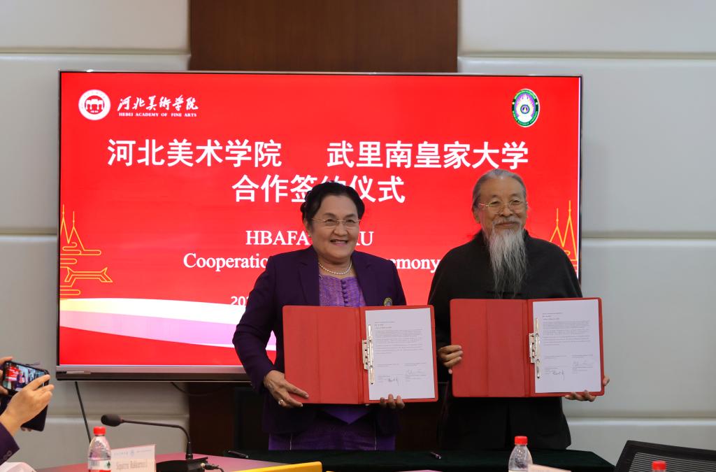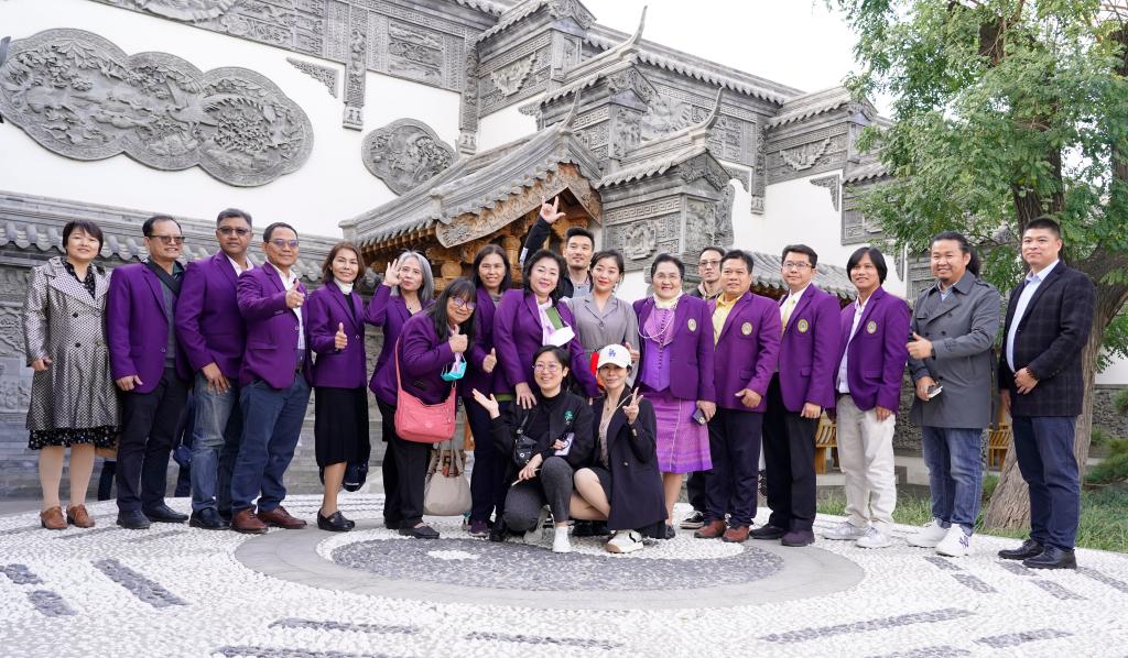 11月3日,原中国驻泰国大使馆文化参赞秦裕森、泰国武里南皇家大学校长Malinee一行17人到best365官网考察交流。校长甄忠义、常务副校长张建敏、学科办主任张立阳、动画数字艺术学院院长姜仁峰、国际交流与合作中心副主任郝金龙、艺术团团长朱迎迎陪同。