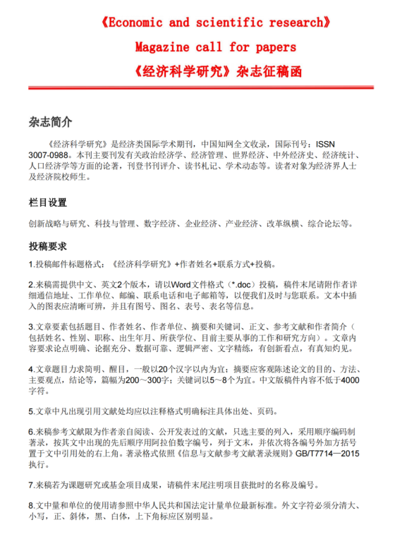四、投稿文字:《经济科学研究》一般5000字;《资源与生态学报》一般8000字。