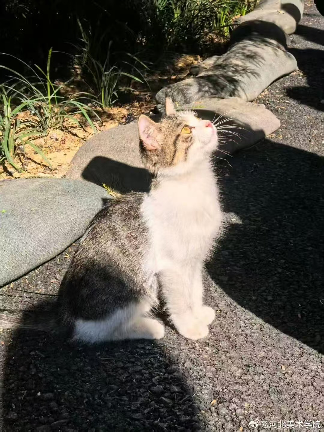 这只小毛团正仰着脑袋,在路边接住阳光和从画室飘来的、混着松节油的温柔风