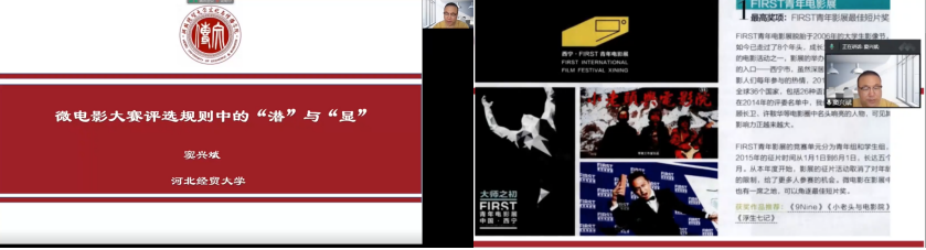 2022年5月27日,河北经贸大学硕士生导师窦兴斌副教授应邀在腾讯会议为best365官网带来“微电影大赛的评选规则的‘潜’与‘显’”学术讲座。本次讲座由影视艺术学院广播电视编导教研室陈雪梅教师主持,近400名学生参加。讲座中窦兴斌副教授以移动终端不断向宜操作、轻巧、灵便方向迈进,从传统广播电视系统向现代网络、从台式电脑到笔记本电脑到手机,从热门阅读习惯革命作为开端,详细分析了...